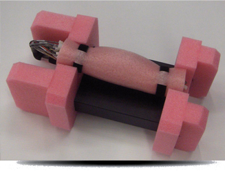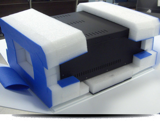 Épaulement de mousse d'éthafoam antistatique protégeant un appareil électronique contre les vibrations et les chocs durant son expédition.